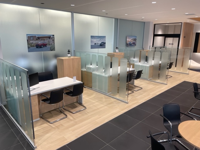 ガラスパーテーションで仕切られた落ち着いた空間の商談ブースや、